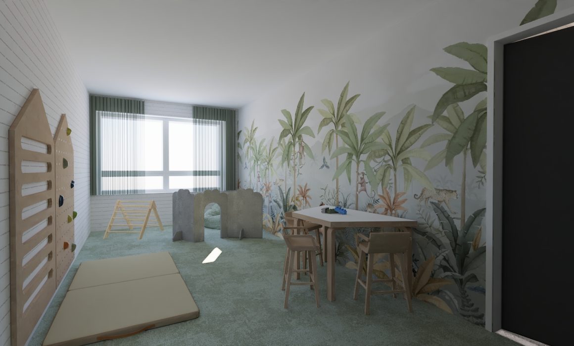 Kun minut kutsuttiin suunnittelemaan Onnimanni-päiväkotia, kyseessä oli liikunta- ja metsäpainotteinen päiväkoti, jonka tilojen tuli tukea aktiivista arkea ja luonnonläheistä toimintaa. Tavoitteena oli yhdistää kolme erillisissä tiloissa toimivaa ryhmää sisustuksellisesti yhtenäiseksi kokonaisuudeksi. Halusin luoda tilat, joissa lapset viihtyvät, henkilöstö voi työskennellä sujuvasti ja jokainen yksityiskohta tukee arkea sekä pedagogisia tavoitteita.